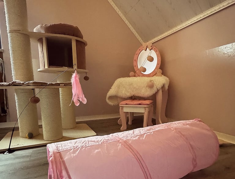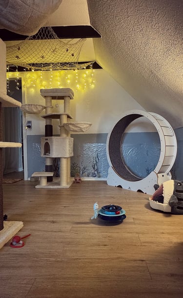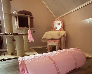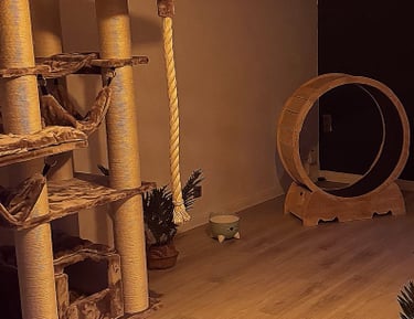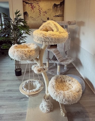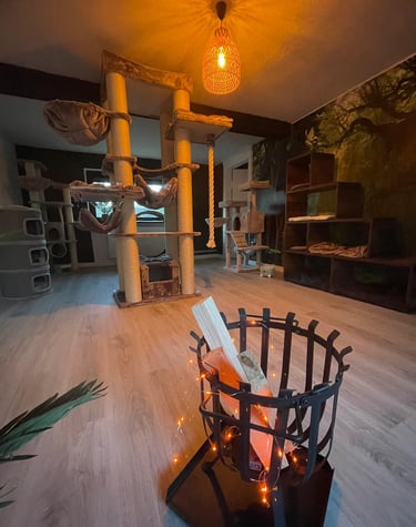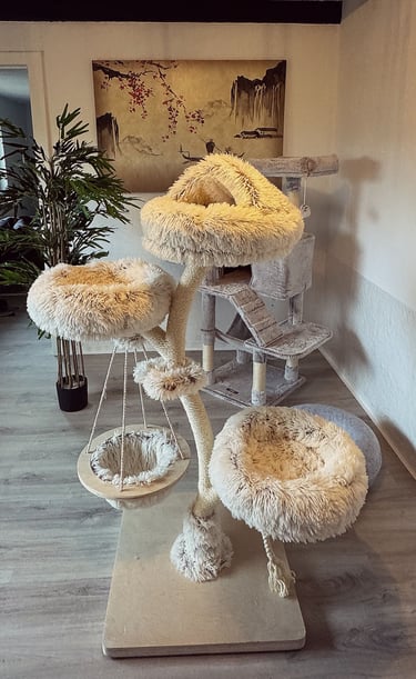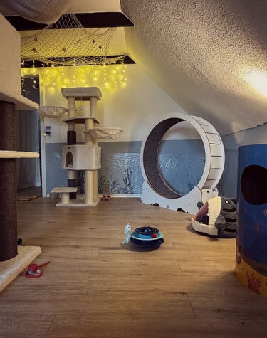 Wir haben ein komplettes Einfamilienhaus für unseren Traum von einer modernen und liebevollen Katzenbetreuung umgestaltet. Die Gestaltung unserer Räume ist orientiert an den Bedürfnissen unserer Samtpfoten. Wir haben Themenzimmer für unsere Gäste geschaffen, welche mit zahlreichen Kuschel- und Versteckmöglichkeiten ausgestattet sind und einen einladenden Charakter für Mensch und Tier haben.