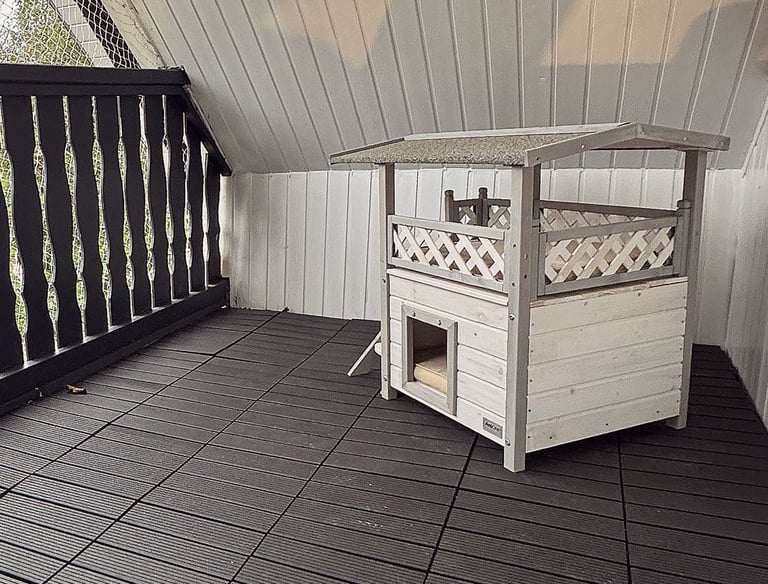 Ein katzengerecht gesicherter Balkon lädt zum Sonne tanken ein.