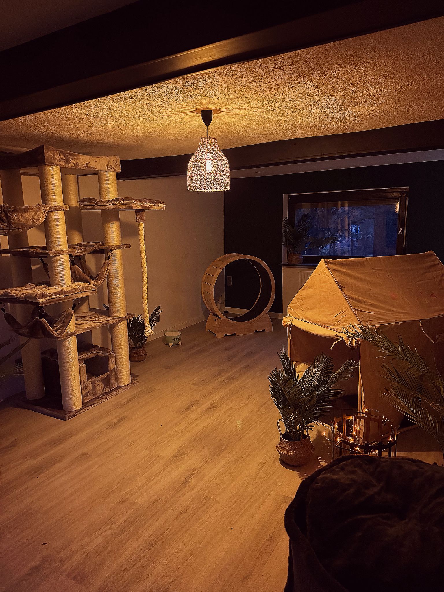 Die beiden Laufräder in unseren Gruppenzimmern bieten auch den aktivsten Samtpfoten ausreichend Bewegung.