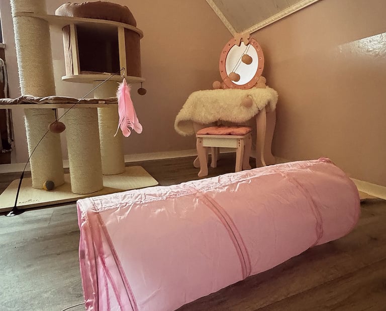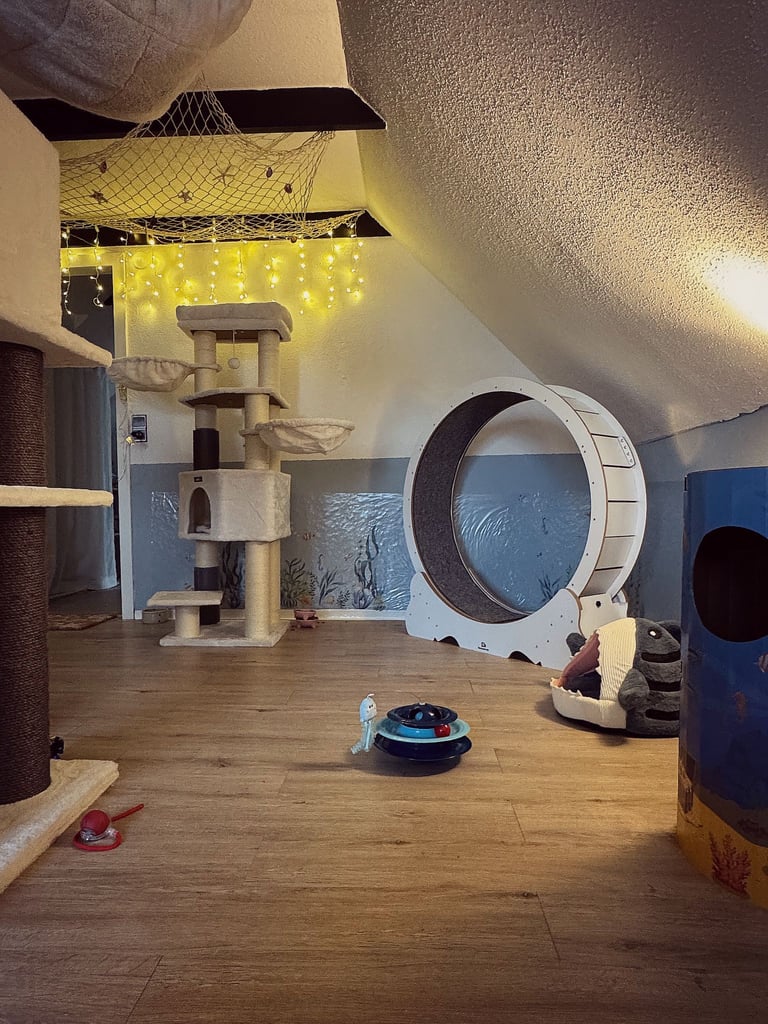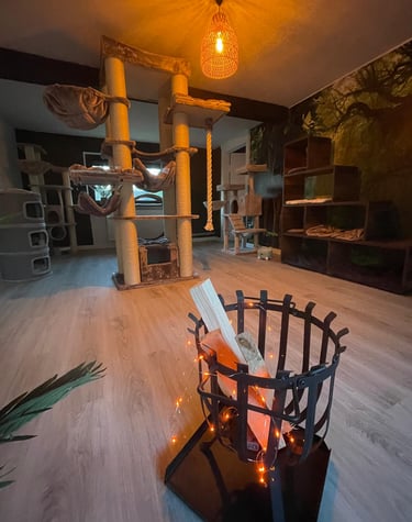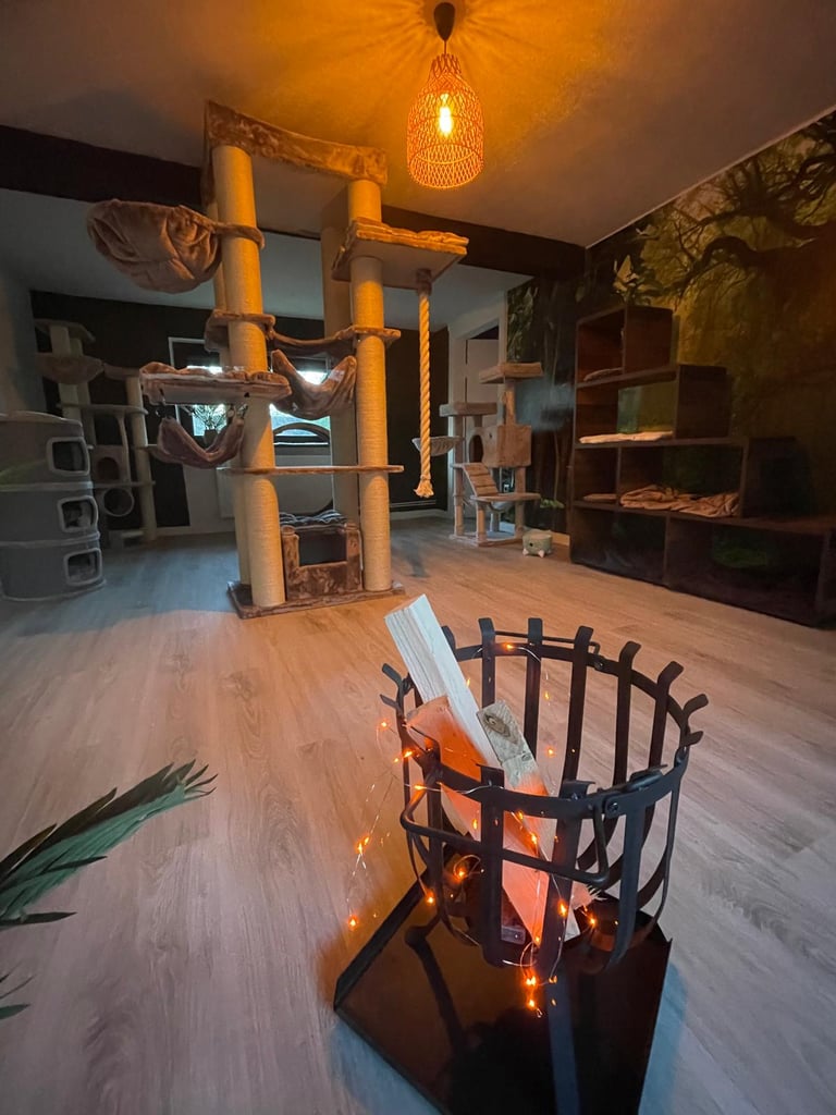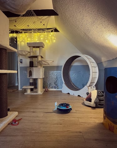 Wir haben ein komplettes Einfamilienhaus für unseren Traum von einer modernen und liebevollen Katzenbetreuung umgestaltet. Die Gestaltung unserer Räume ist orientiert an den Bedürfnissen unserer Samtpfoten. Wir haben Themenzimmer für unsere Gäste geschaffen, welche mit zahlreichen Kuschel- und Versteckmöglichkeiten ausgestattet sind und einen einladenden Charakter für Mensch und Tier haben.
